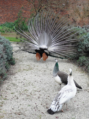 After chatting with Lara, on and off the radio, I continued my walk around the grounds. The walled garden had some peacock activity going on. Mr Peacocks bum is just as attractive as his magnificent frontal plumage.