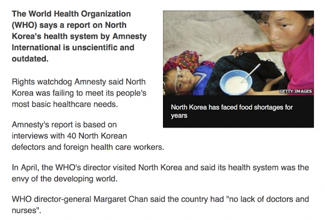 Beneath the mountain of media disinformation, there is more than meets the eye. Despite sanctions and military threats, not to mention the failed intent of “respectable” human rights organizations (including Amnesty International) to distort the facts, North Korea’s “health system is the envy of the developing world” according to the Director General of the World Health Organization: